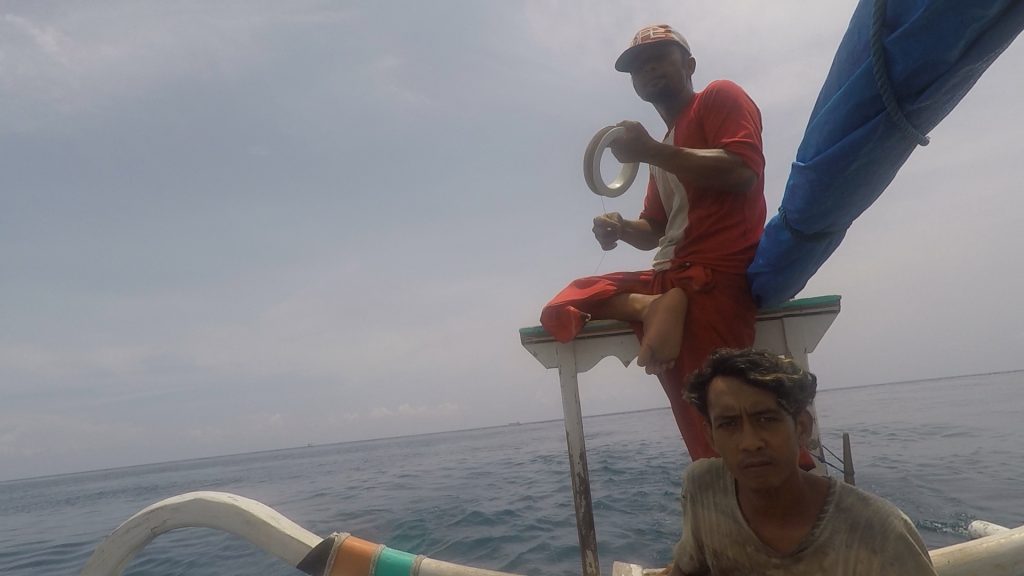 Medens Niels fotograferede nede i dybet, fortalte fiskeren, at han havde fanget 4 kg fisk her til morgen. Han fik 50.000 rupiah for et kg fisk. De 200.000 rupiah, som han fik for hans fisk idag, svarer til 100 kr. Tænk hvis man kunne få et kg fisk i Hvide Sande for 25 kr.