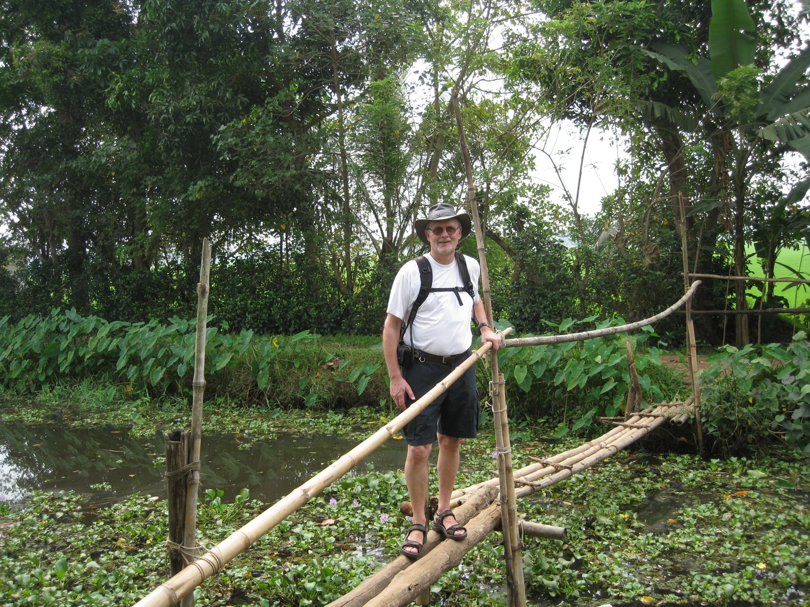 Vi vågnede til en fin, kølig morgen. Medens vi spiste morgenmad kom der to små kanoer med et par fiskere, de satte nogle garn ud i en halvcirkel og sejlede derefter rundt og slog med en lang bambuspind i vandet, for at jage fiskene ind i nettet. Så blev nettet taget op igen. Det så ikke ud til, at der var en særlig stor fangst. Vi tog ud på en gåtur langs de små kanaler og rismarkerne sammen med ”Ourland”s vært, Radish, hvor han igen fortalte om de mange fugle og planter, som vi kom forbi.