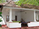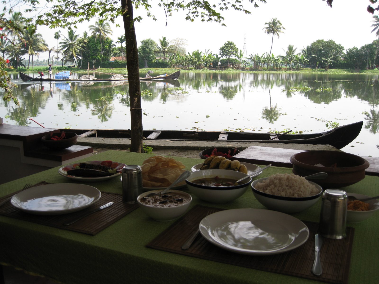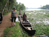 Vejen til Alleypey ret tæt bebygget, så vi fornemmede ikke, at vi kom ud på landet. I Alleypey så vi lidt på Det Arabiske Hav inden vi fortsatte gennem byen langs nogen af de gamle kanaler og videre ud af byen til en lille vej hvor vi blev omladet i en autorickshaw. Herfra fortsatte vi ad en lille grusvej på en dæmning mellem rismarkerne til en lille træbåd, der ventede på os nede ved vandet. Igennem en masse vandhyacinter blev vi roet over til øen, hvor ”Ourland” ligger, og her blev vi inlogeret på et meget dejligt værelse med en terrasse lige ned til vandet. Det hele ligner næsten paradis. Fra den hyggelige terrasse ser vi ud på den meget smukke og meget indiske udsigt. En lille træbåd ligger forankret neden for vores terrasse, på vandet flyder vandhyacinter forbi, på den anden side af vandet er en tange med nogle få huse og kokospalmer, hvor papegøjerne svirrer rundt, og bagved er der smukke lysegrønne rismarker. En hane galer mellem husene, og kragerne skriger som altid i det fjerne. En træstamme flyder forbi, med lidt fantasi kunne det godt ligne en krokodille. En ratsnake svømmede også forbi.